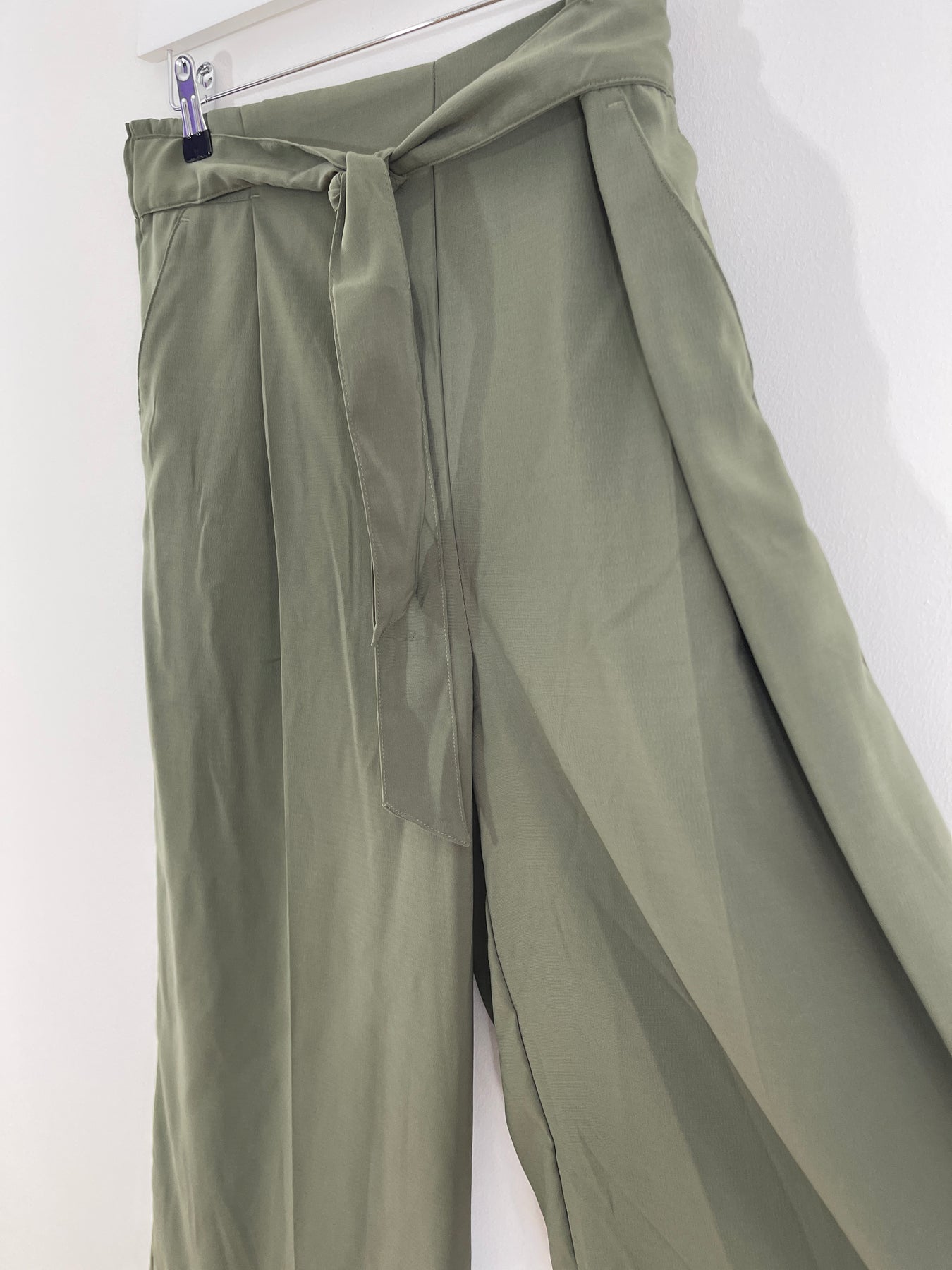Khaki Green Cropped Wide Leg Trousers (Medium)