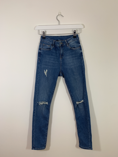 Blue High Waist Skinny Ripped Jeans (W25L28)