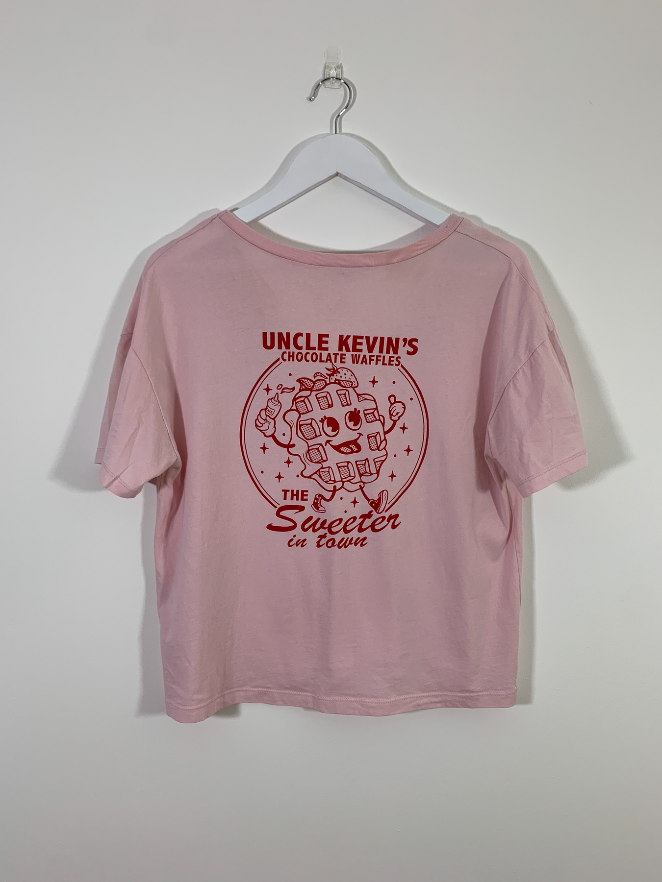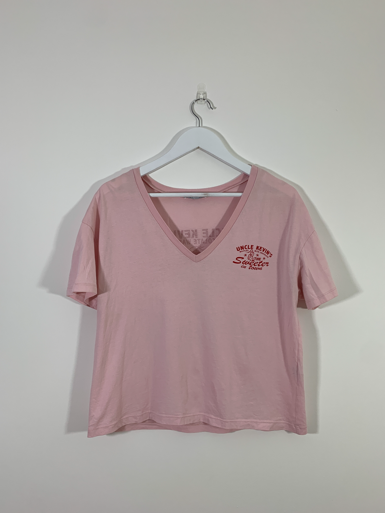 Pink Waffle Print V Neck T-Shirt (Medium)