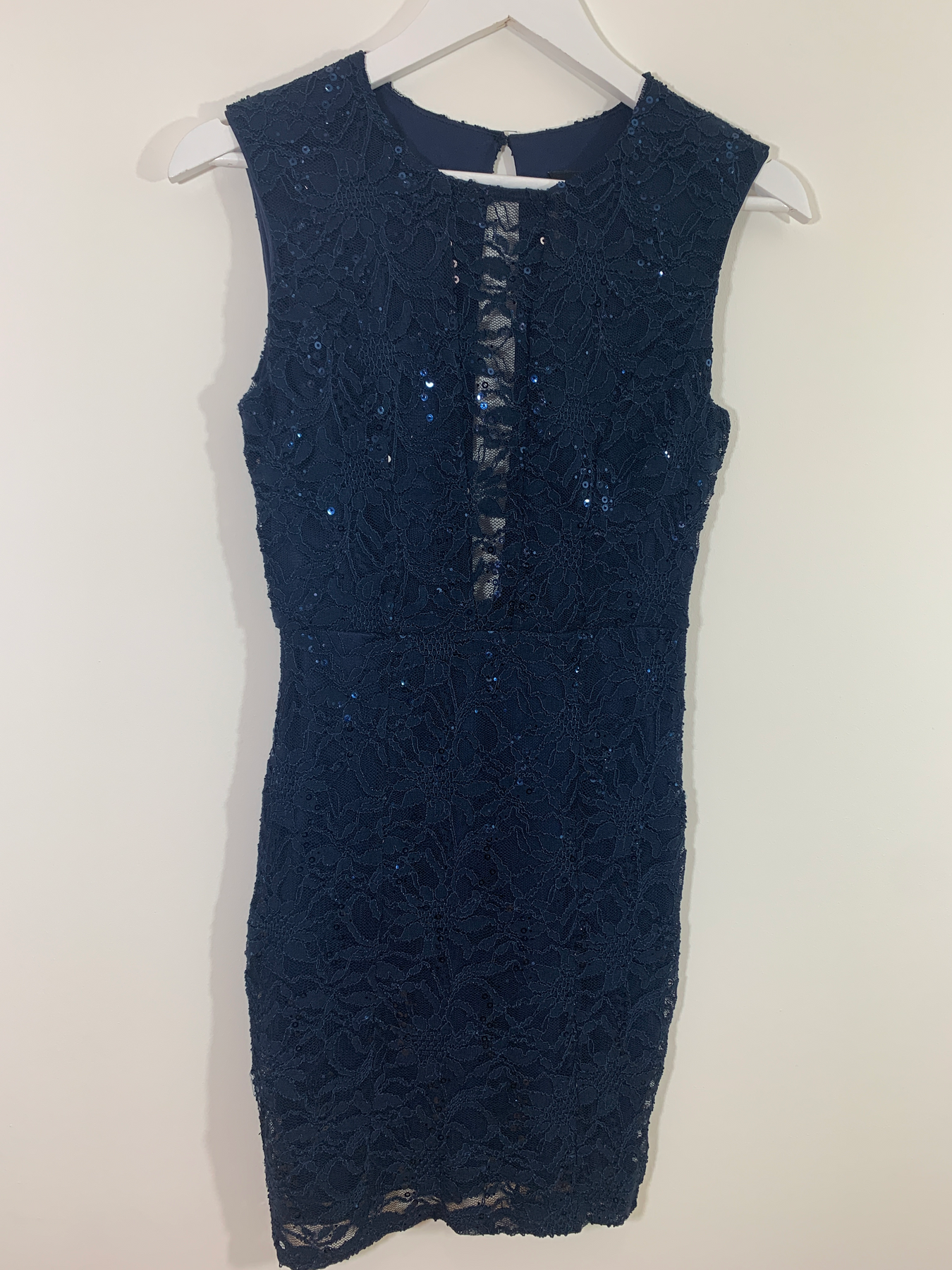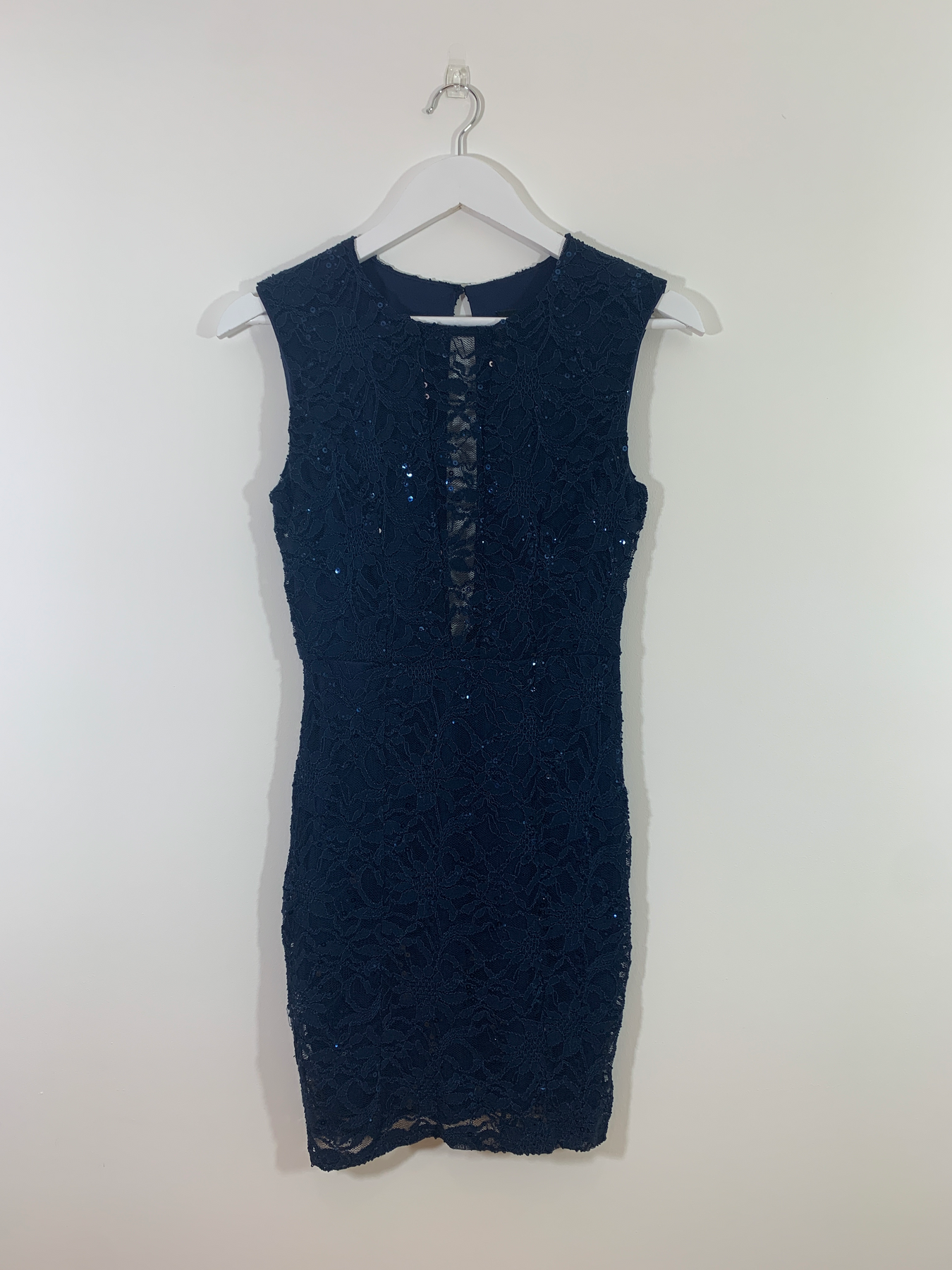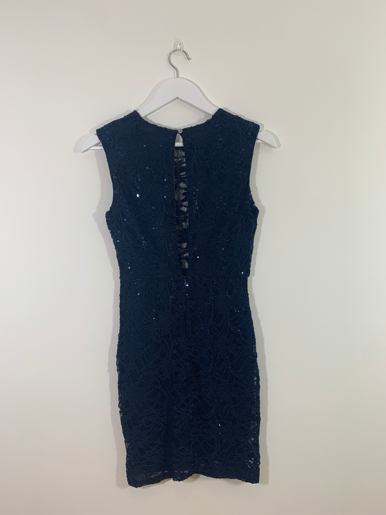 Blue Lace Sequin Detail Midi Dress (Size 10)