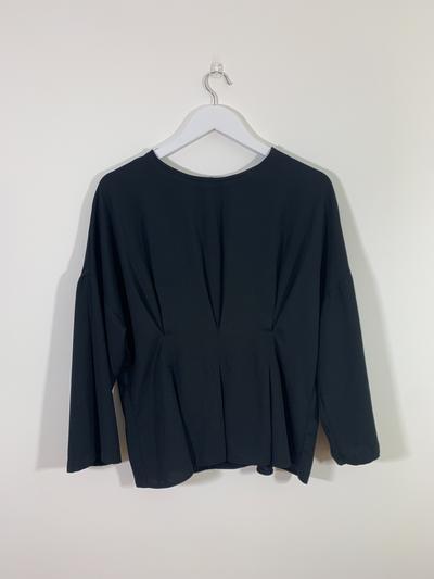 Black Structured Blouse with Slit Back (Size 16)